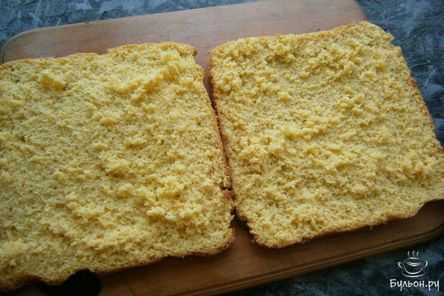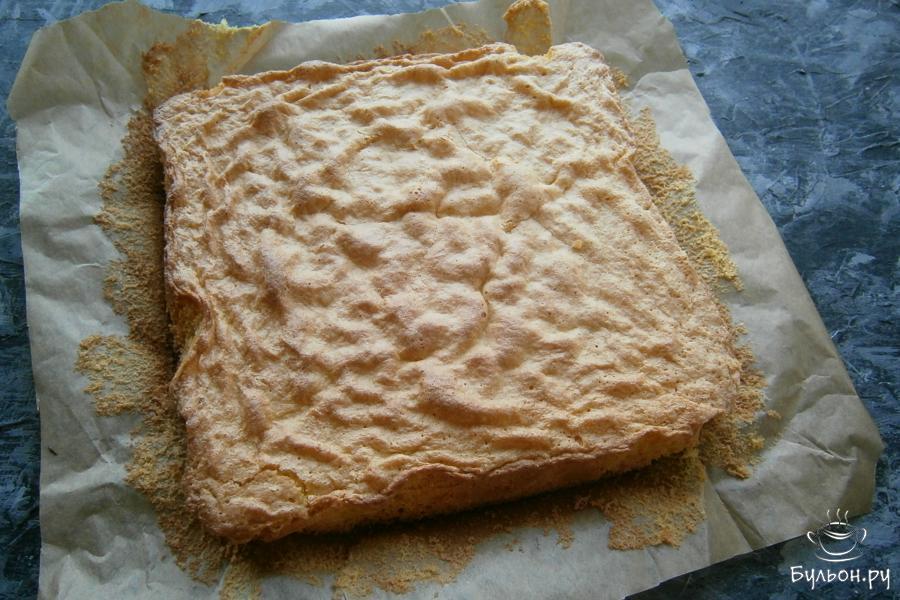 4. Печь бисквит в разогретой духовке со 180 градусами, не открывая ее, около 30 мин., после чего бисквит остудить на решетке.