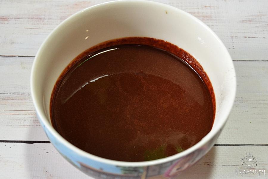 3. Растопим какао-продукты на водяной бане, в процессе будем все время перемешивать массу. Снимем с огня и будем перемешивать массу, пока ее температура не опустится до 27 градусов. Затем еще раз подогреем массу над паром до температуры 32 градуса.