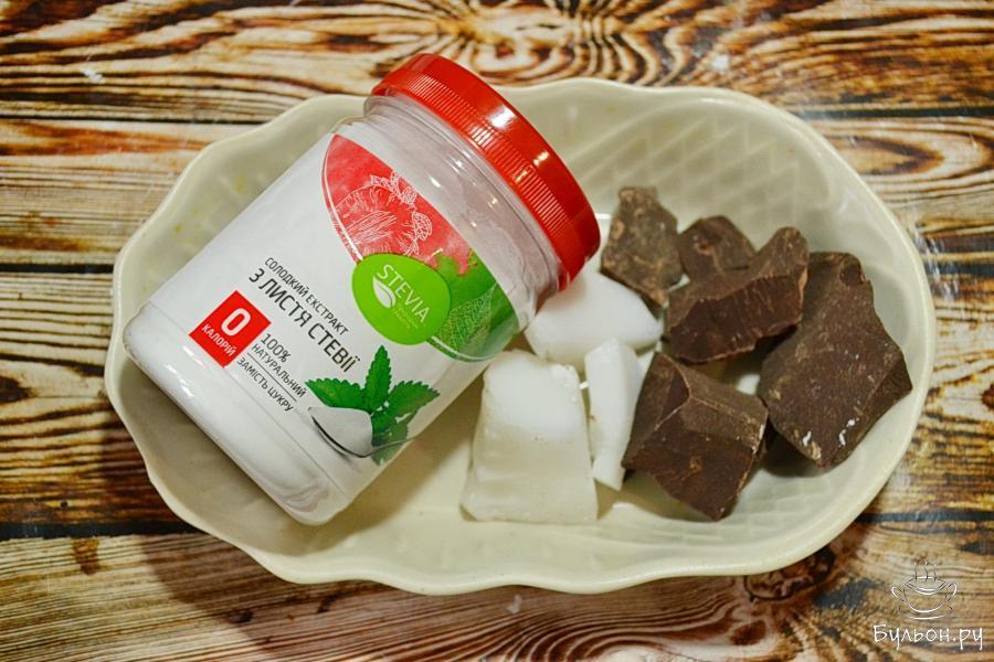 1. Для приготовления натурального шоколада нам понадобится всего три ингредиента: тертое какао, подсластитель на основе стевии и какао масло.