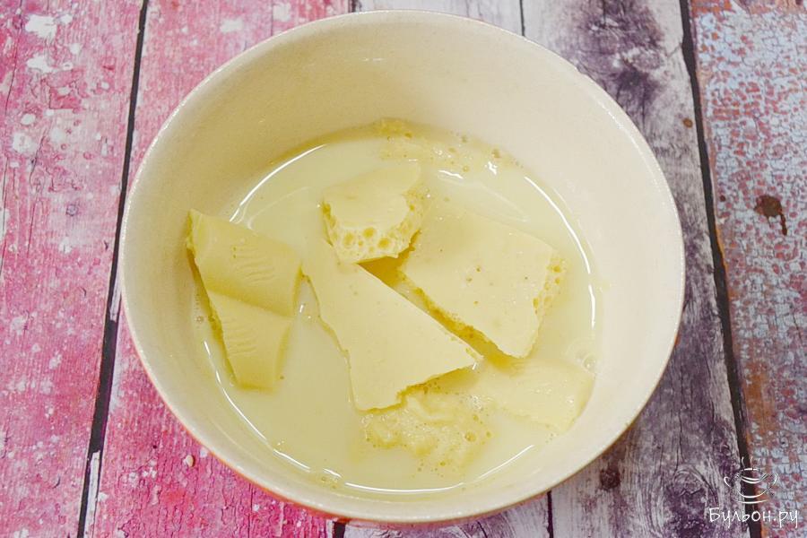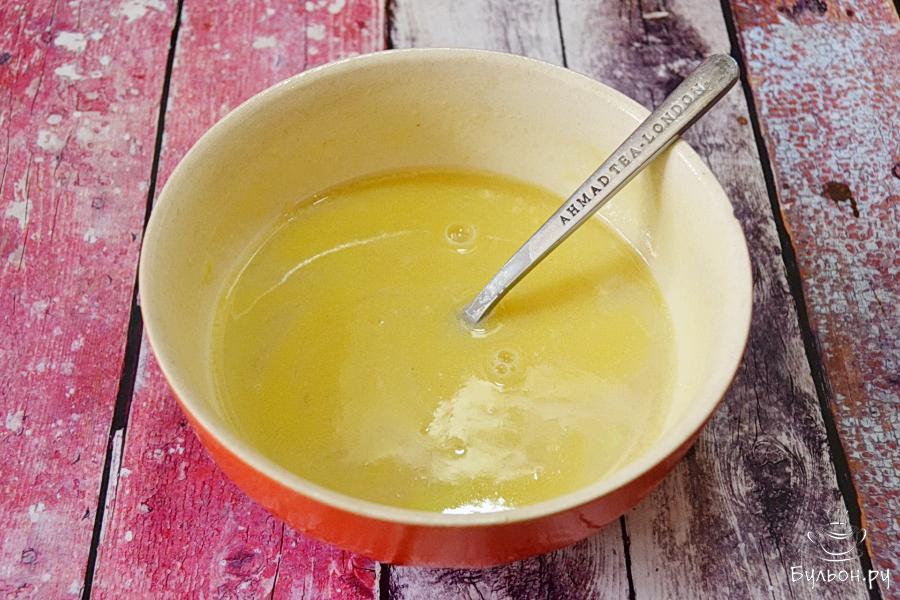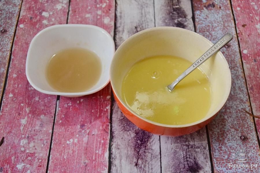 2. Желатин зальем небольшим количеством теплой воды и оставим для набухания. Когда он нам понадобится, подтопим его на водяной бане и перемешаем, чтобы растворился.