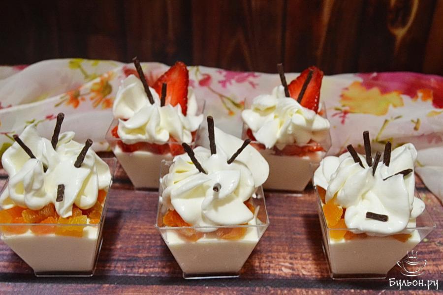 10. Разольем по креманкам, наполняя креманки на три четверти. Поставим в холодильник, пока масса не застынет.