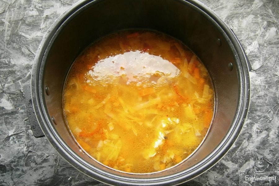 6. Снова выставить тот же режим на пятнадцать минут. Готовые щи оставить в мультиварке под закрытой крышкой еще на двадцать минут.