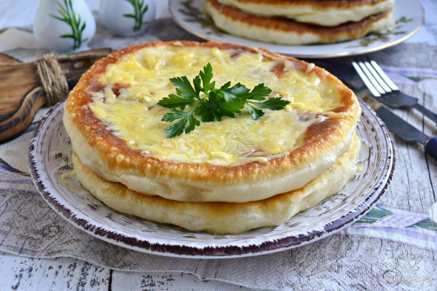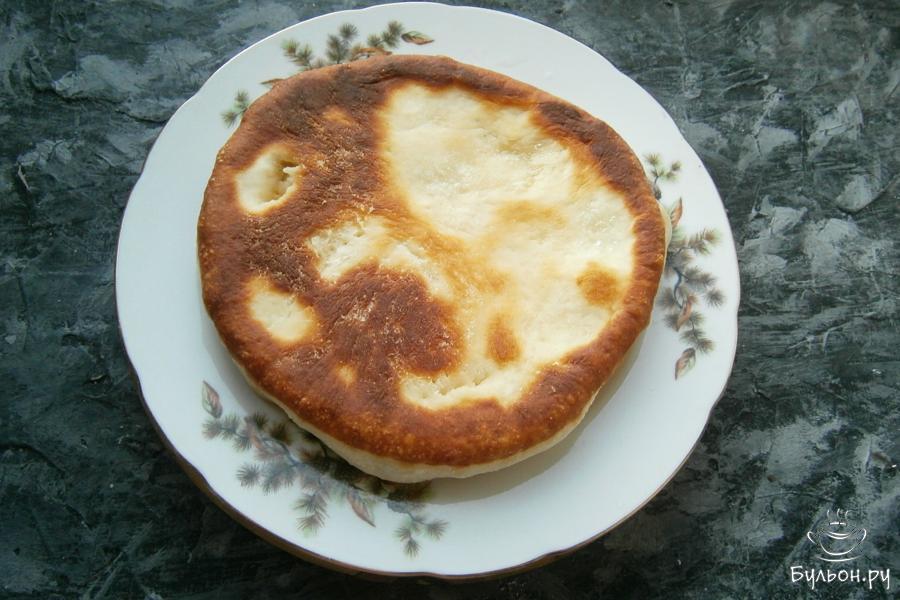 9. Масло разогреть и жарить лангош на небольшом огне, прикрыв сковородку крышкой до румяности с обеих сторон. Жарятся лепешки быстро, как обычные пирожки.