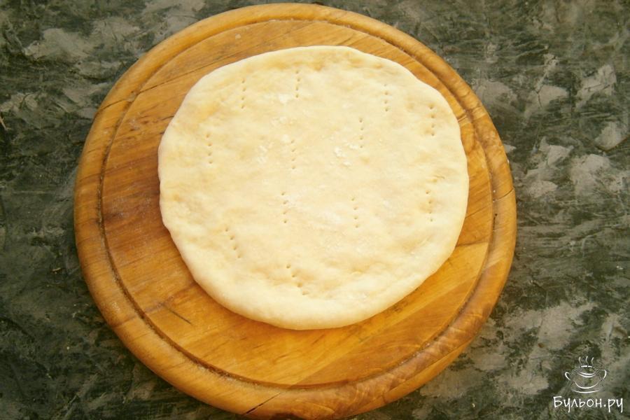 8. Раскатать каждый шарик в лепешку диаметром около 15-17 см, поколоть вилкой. Края лепешки должны быть чуть толще середины.