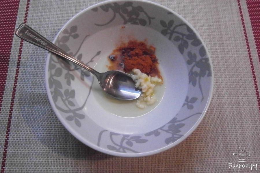 3. Смешать любое, какое есть в наличии, растительное масло с паприкой, пропущенным через пресс чесноком и солью.