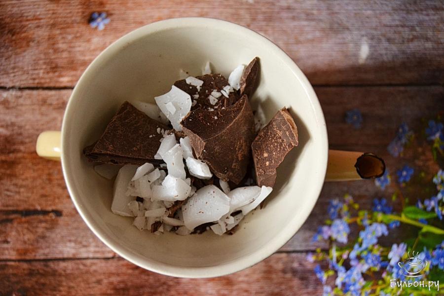 1. Какао тертое представляет собой довольно твердые кусочки неопределенной формы. Какао-масло у меня сегодня дезодорированное - без вкуса и запаха. Чтобы вкусовая гамма получилась более интересной, я добавлю немного корицы.