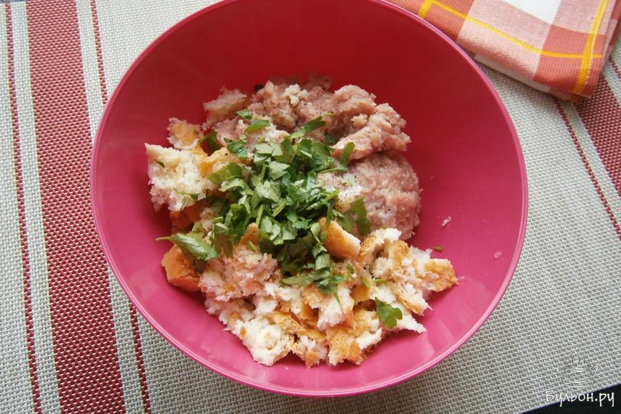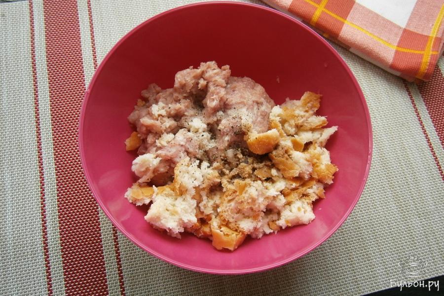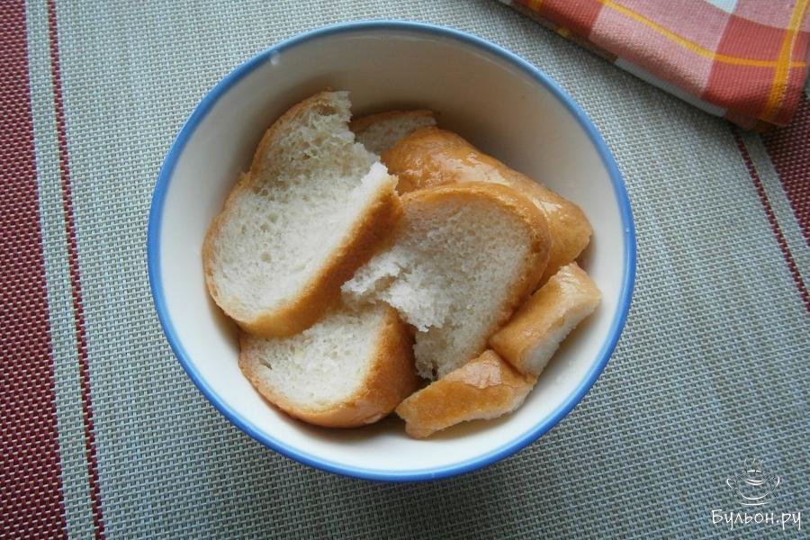 4. В воде замочить предварительно ломти белого хлеба или батона. Корочки можете обрезать, я не обрезала.