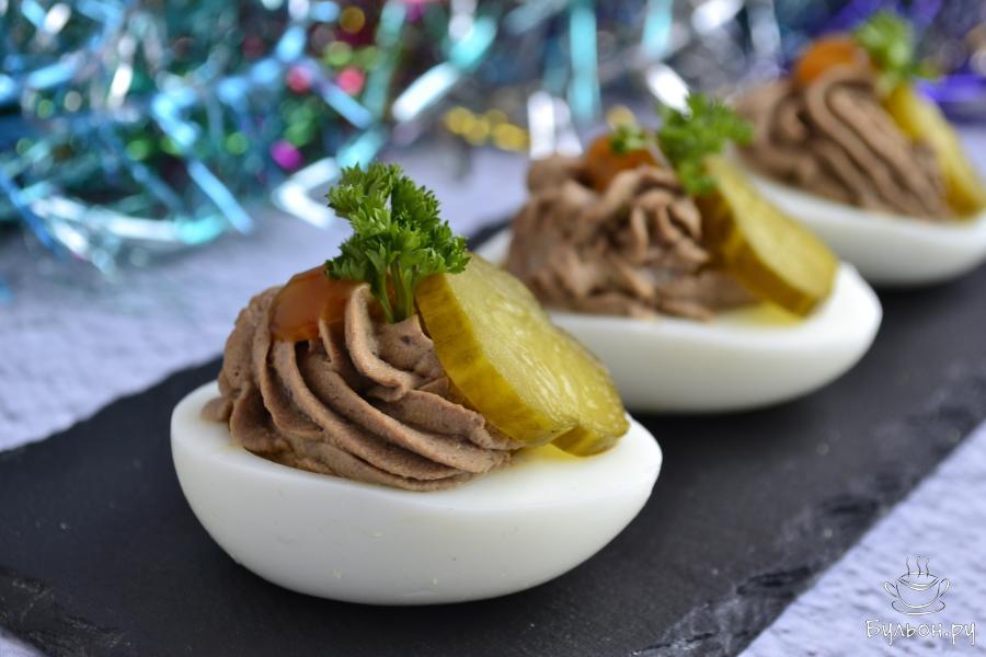 Холодные закуски всегда присутствуют на любом праздничном столе и одна из любимых закусок любой хозяйки - это фаршированные яйца. Для яиц можно приготовить всевозможные начинки, а я предлагаю нафаршировать яйца куриной печенью. Можно конечно использовать и говяжью или свиную печенку, но с куриной - закуска будет нежнее. Закуска получается очень вкусной, она понравится всем без исключения и украсит любой стол. А если яйца еще и оформить по-праздничному, блюдо несомненно привлечет к себе особое внимание и будет съедено одним из первых. Попробуйте обязательно, очень вкусно.