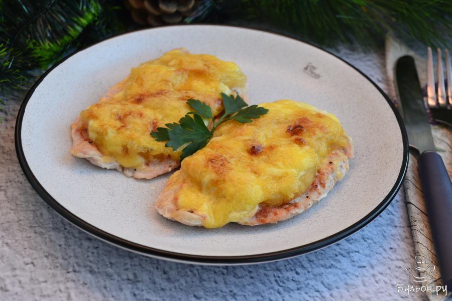 Если вы ищите рецепт главного горячего блюда на праздничный стол, обязательно попробуйте запечь куриную грудку в духовке с ананасами. Это шикарное блюдо понравится всем без исключения. Сочное, мягкое, ароматное куриное мясо со сладковатыми ананасами, да еще с сыром сверху - что может быть лучше. Готовится все совершенно не сложно и не долго, подается блюдо обязательно горячим с любым гарниром. В качестве гарнира лучше всего подойдет картофельное пюре или запеченный картофель, а также, отварной рис или свежие овощи. Обязательно приготовьте это блюдо - очень вкусно.
