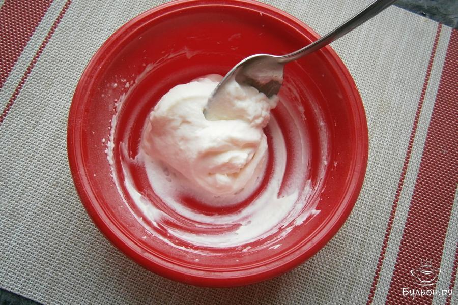 12. Крем должен получиться достаточно густым. Если сметана у вас магазинная, добавьте в нее загуститель сливок или сметаны.