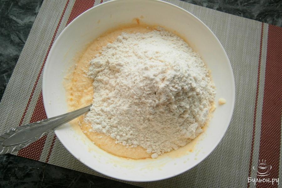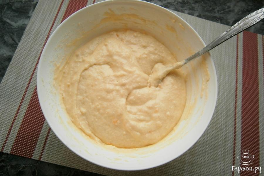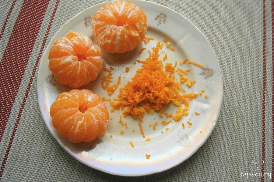 6. Из мандаринов выжать сок, должно получиться 100 мл (если меньше, добавьте воды). И сок, и цедру добавить в масляную смесь, тщательно перемешать.
