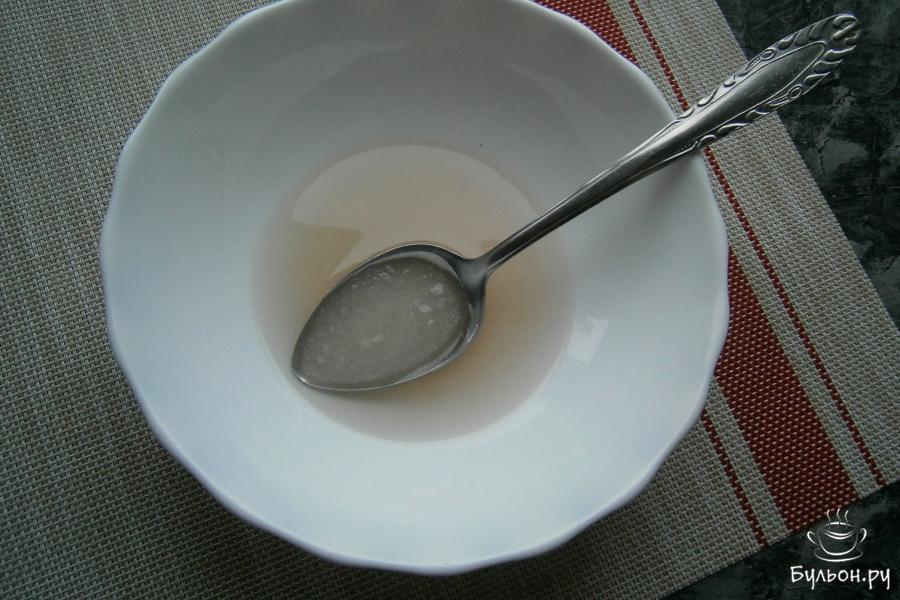 6. В отдельную посуду налить уксус, добавить сахар и оставшуюся соль Прогреть все в микроволновке около 30 секунд, чтобы соль и сахар растворились. Маринад остудить.