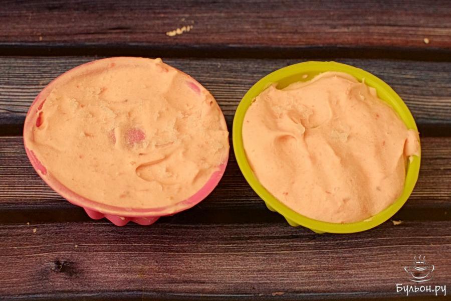 8. Формировать пирожное можно в любой форме или креманке. У меня сегодня порционные силиконовые формочки. Наполняем и ставим в морозилку.