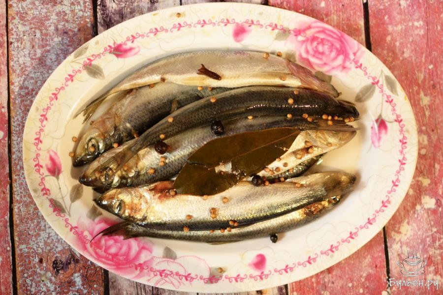 4. Оставим на сутки. Через сутки салака будет готова. Мы видим, что рассол потемнел еще больше, жидкость приобрела резкий пряный запах.