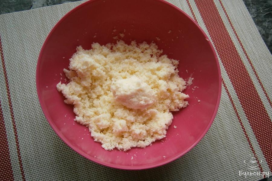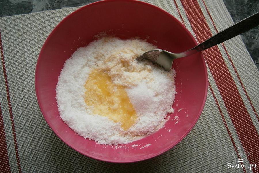 3. Теперь нужно все очень хорошо перемешать. При сжатии в комок кокосовой стружки, она должна без проблем лепиться и не распадаться.