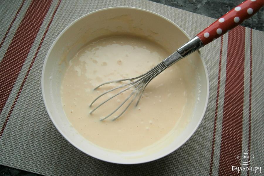 4. Замесить венчиком не густое, но и не жидкое тесто, которое оставить на 10 мин. при комнатной температуре.
