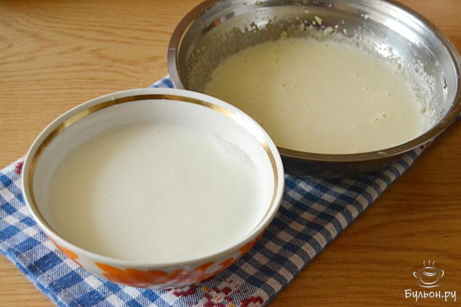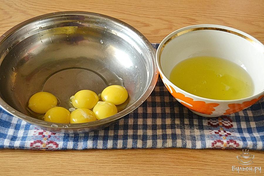 5. А тем временем можно подготовить начинку. Яйца разделить на белки и желтки и разложить по разным мисочкам.