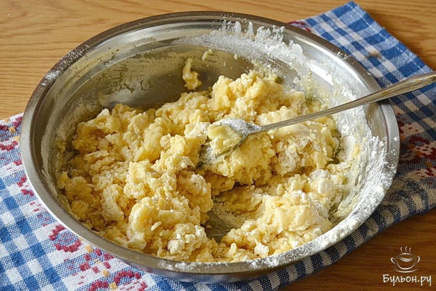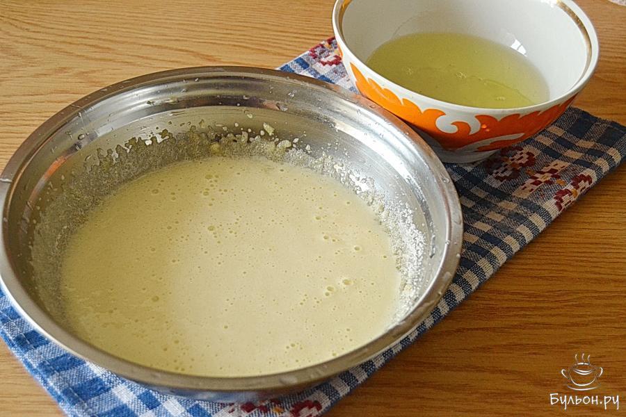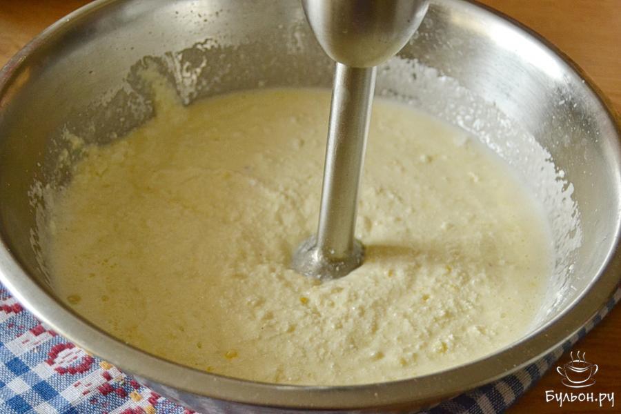 11. Добавить растопленное и охлажденное сливочное масло. Перемешать при помощи миксера или блендера. Масса должна быть однородной.