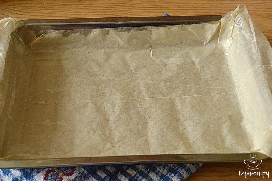 12. Форму для выпечки застелить пергаментной бумагой, обильно смазать бумагу рафинированным растительным (подсолнечным) маслом или другим жиром.