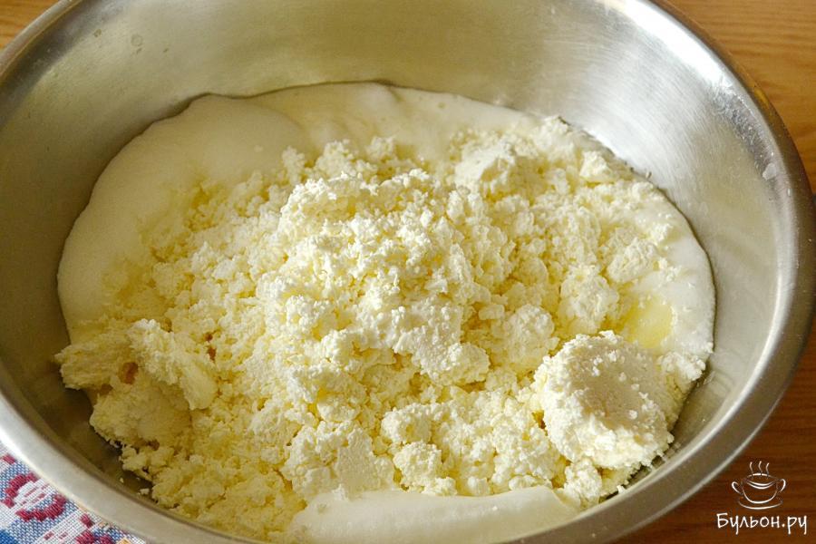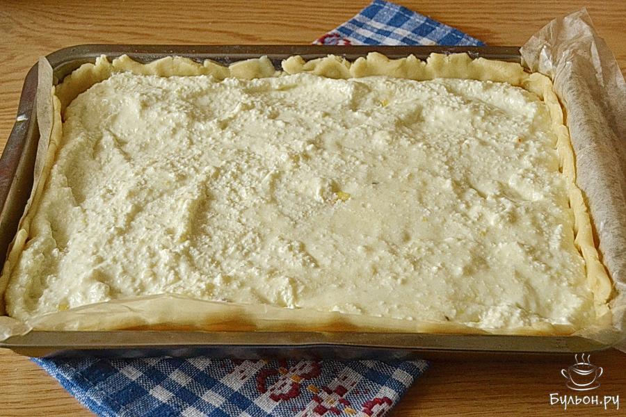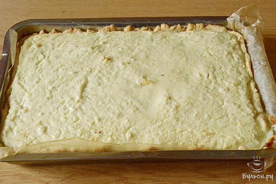 15. Наполнить форму творожной начинкой. Поставить в духовку и выпекать минут 40-50, пока творог не начнет подрумяниваться.