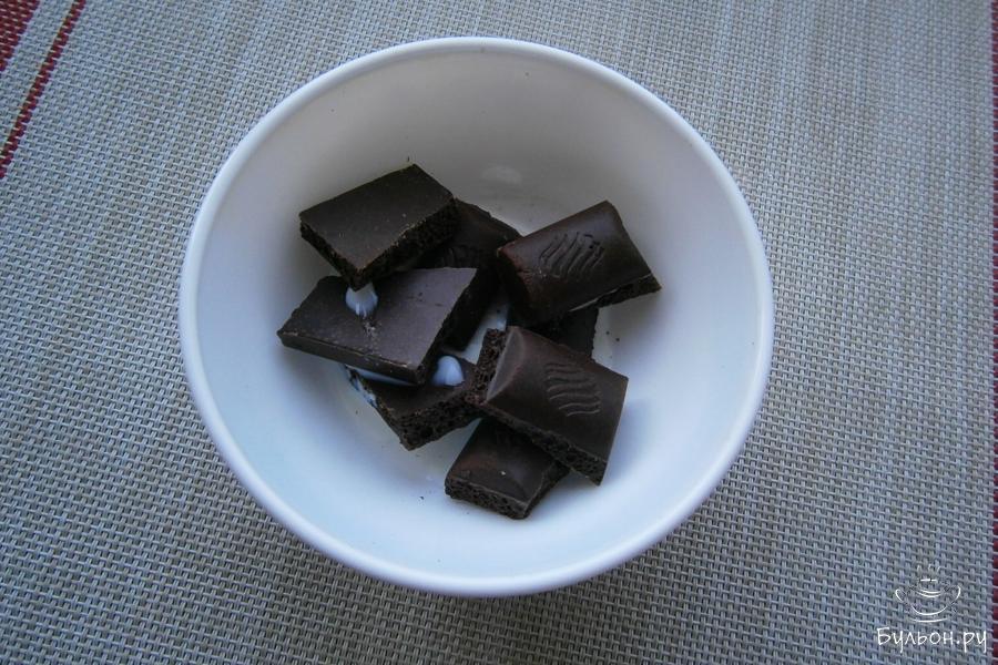 8. Готовому печенью дать остыть, а за это время приготовить глазурь для украшения. Для этого: к кусочкам черного шоколада добавить сливки любой жирности, растопить шоколад на водяной бане.