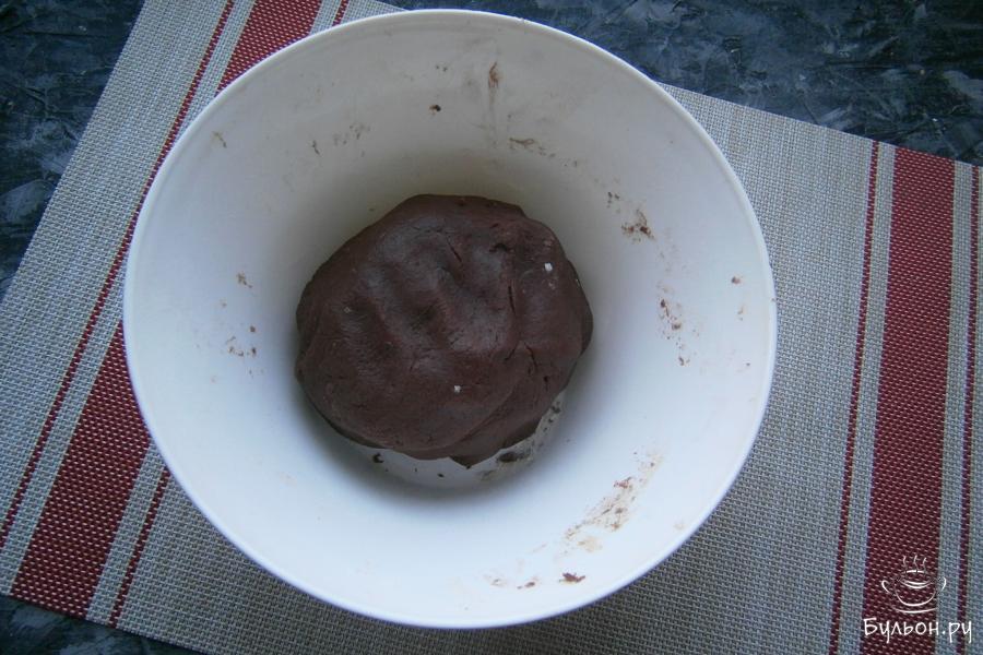 5. Быстренько замесить гладкое и однородное тесто, которое нужно поместить в пакет или пленку и отправить в холодильник на пол часа.