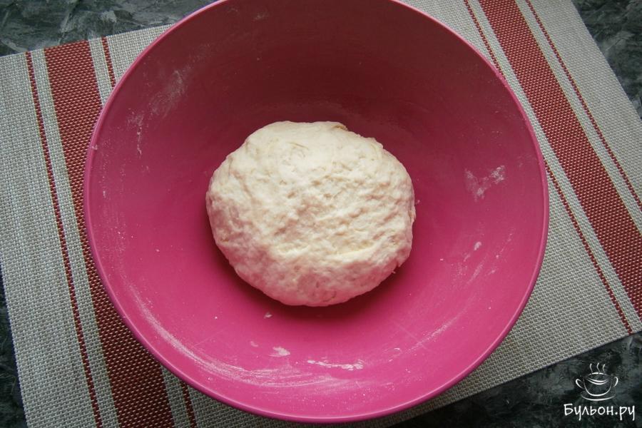 5. Замесить практически не липнущее, плотное тесто, которое отставить минут на 25 (прикрыть пленкой).