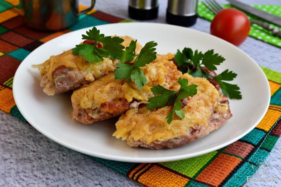 Если вы задумываетесь какое горячее мясное блюдо приготовить для ужина или праздничного стола, попробуйте свинину, запеченную в духовке "под шубой". Это очень вкусное и оригинальное блюдо понравится всем, ведь в готовом виде получается нежное, ароматное и сочное мясо с начинкой из шампиньонов и все это покрыто "шубой" из картофеля и сыра. Подать такое блюдо можно в самостоятельном виде, ведь здесь и мясо и гарнир (два в одном). А дополнить блюдо можно свежими овощами или легким овощным салатиком.