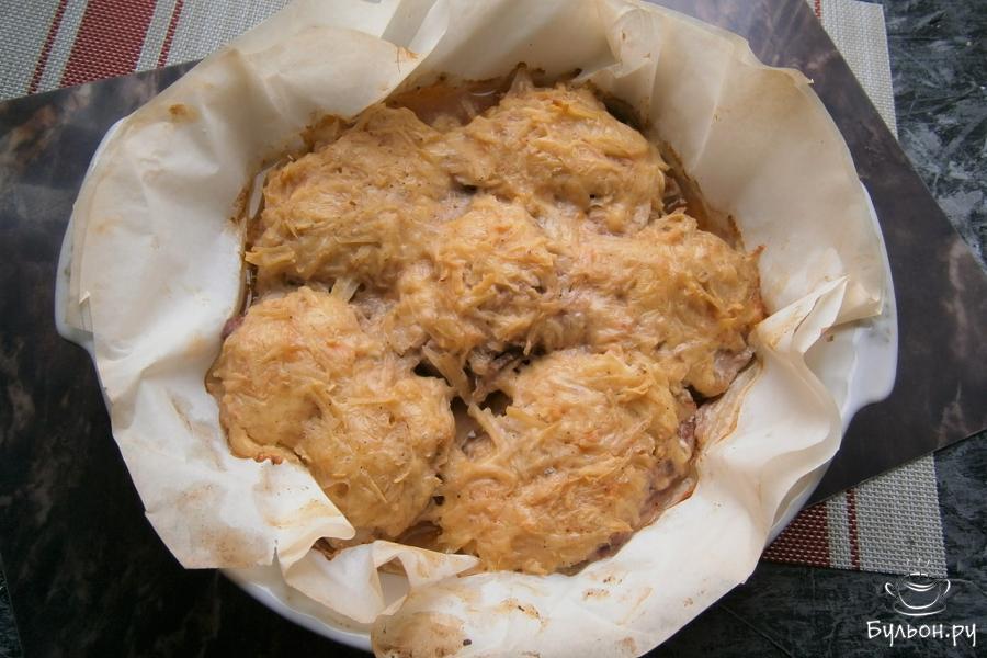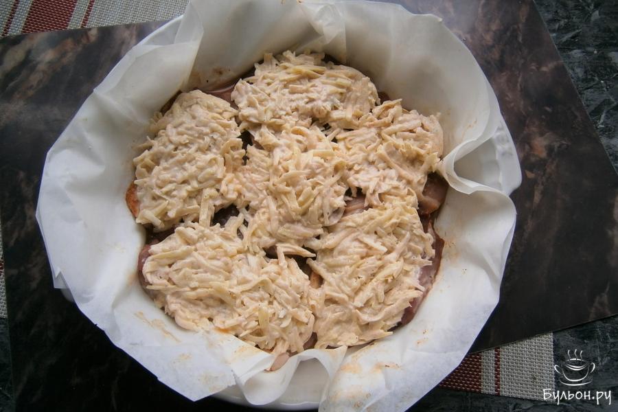 9. Сразу после приготовления свинину "под шубой" следует подавать, пока блюдо горячее. Приятного аппетита.