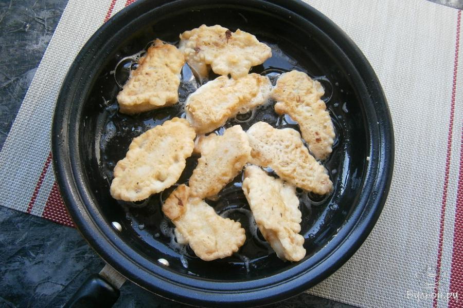 1. Филе рыбы (у меня - морской окунь) если заморожено - разморозить и порезать небольшими кусочками.