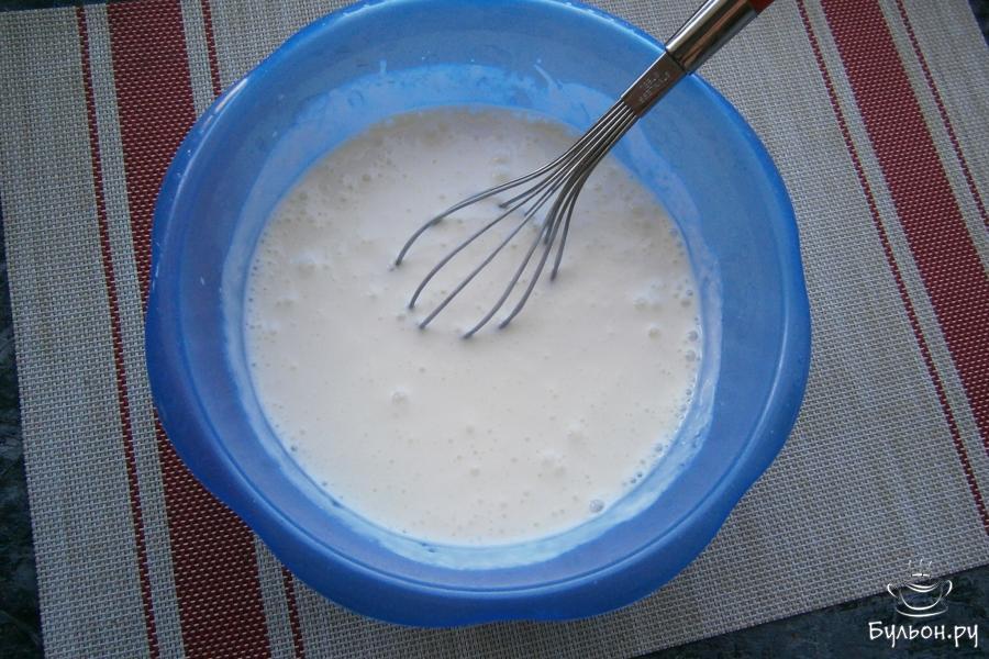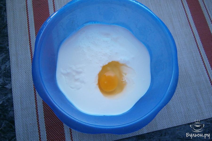 1. Предварительно отварить 3 яйца, очистить их. В кефир средней жирности добавить оставшееся одно сырое яйцо, всыпать 1 ч. л. соли без горки и пищевую соду.