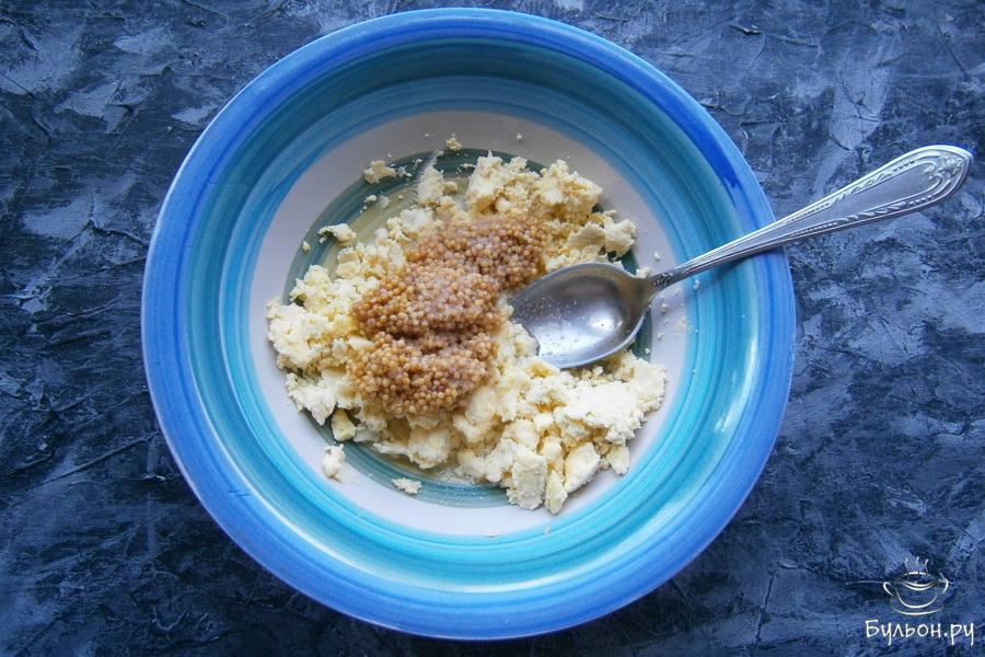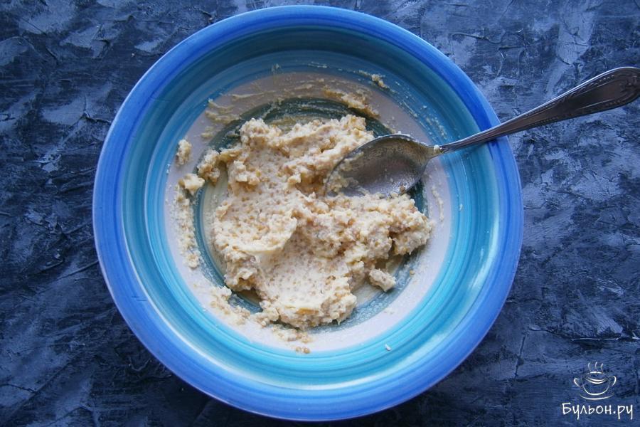 4. Ложкой все тщательно растереть до густоватой массы. Если она получится слишком густой, влейте еще немного растительного масла.