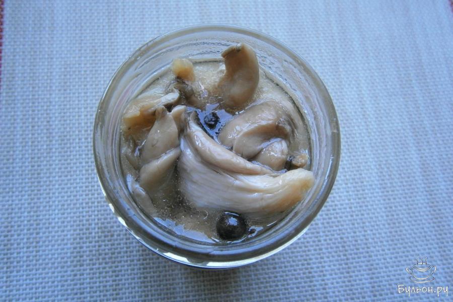 5. Затем, вешенки можно переложить в стеклянную банку или другую подобную тару и хранить в холодильнике около 1 недели. Приготовленные таким образом грибы можно употреблять и сразу, но вкус будет лучше и насыщеннее, если они постоят в холодном месте часа 3-4.