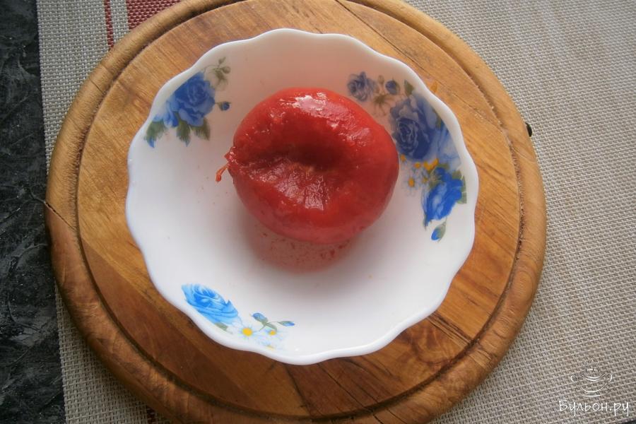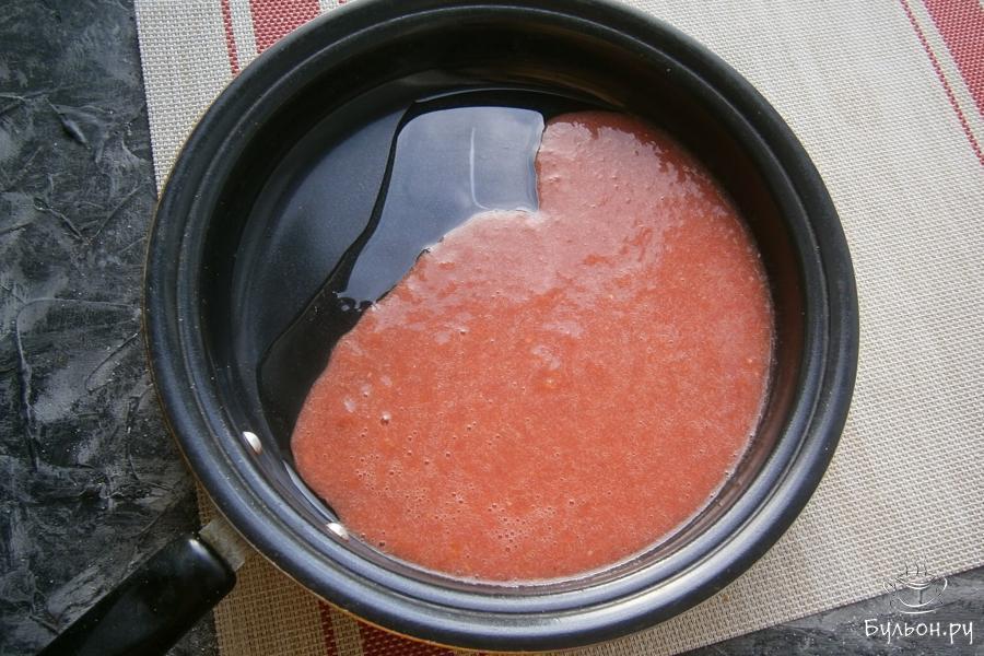 3. Помидор измельчить до состояния пюре блендером, натереть на терке или пропустить через мясорубку.