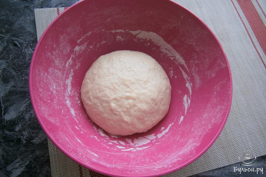 10. Замесить достаточно плотное, но не тугое тесто, которое оставить, прикрыв пленкой на 1 час в теплом месте.