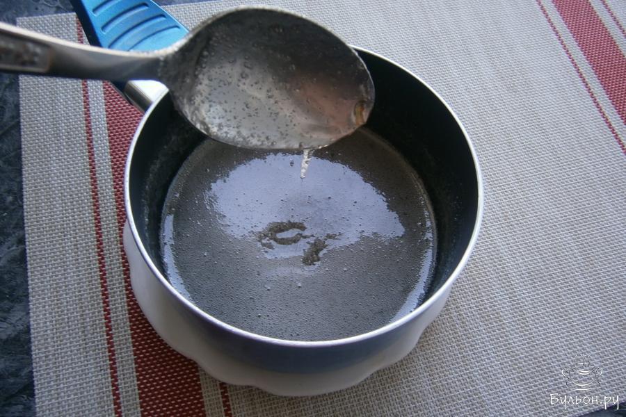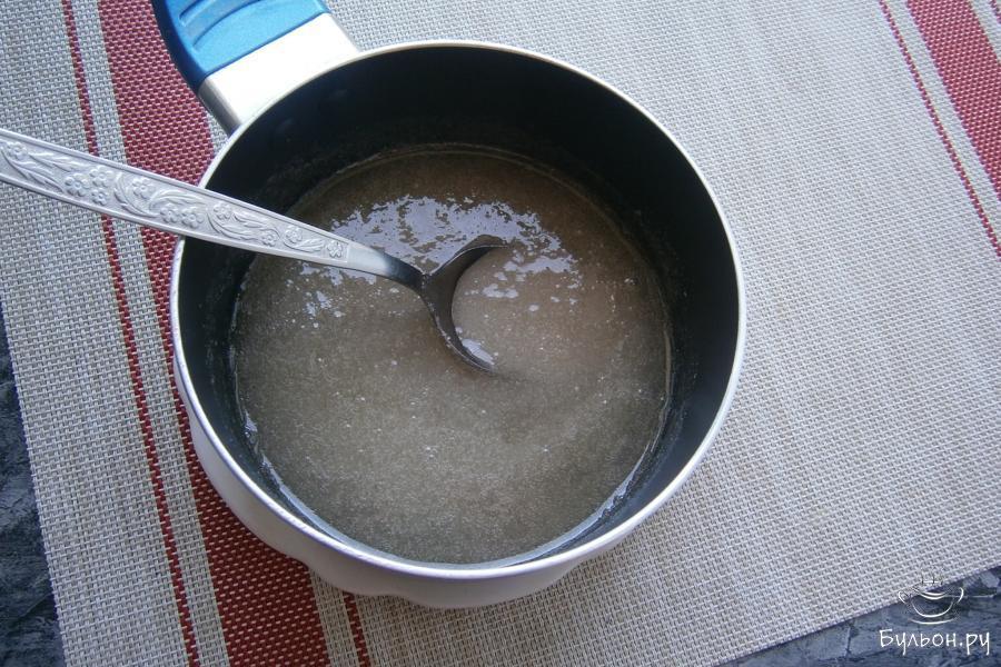 10. Всыпать оставшийся сахар (его должно быть около 210 г), перемешать. Варить сироп на медленном огне, постоянно помешивая до тех пор, пока стекая с ложки, сироп будет тянуться нитью. Для этого может понадобиться около 5-6 минут.