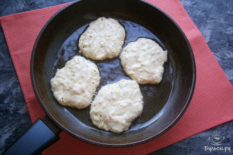 7. Жарить оладушки на небольшом огне до румяности (это быстро происходит, следите, чтобы не подгорели) с двух сторон.