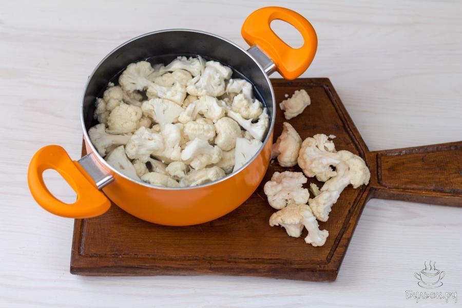 3. Поместите соцветия капусты в кипящий маринад. Снова доведите маринад до кипения и отварите капусту 2-3 минуты с момента закипания воды, до полуготовности.
