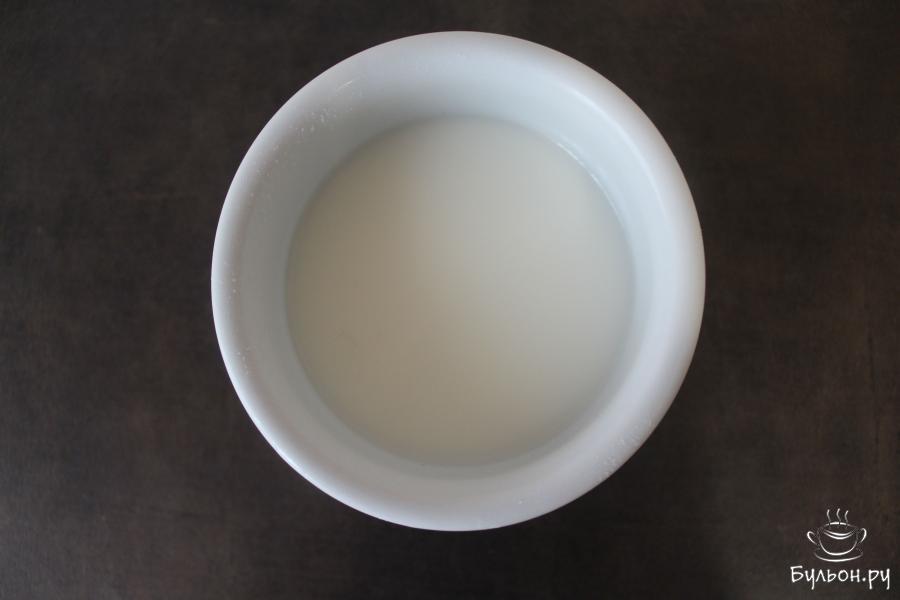 5. Приступим к приготовлению соуса. В пиале развести кукурузный крахмал (отложенные ранее 3 ч. л.) с холодной водой (150 мл.).