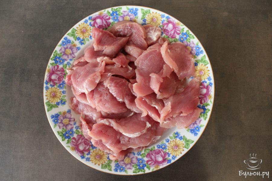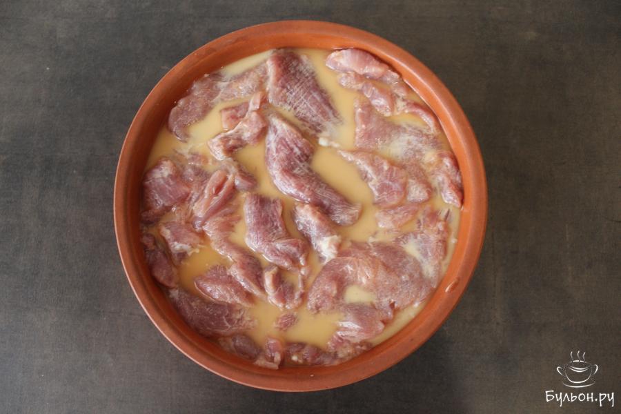 4. Должно получиться мясо цвета, как на фотографии. Далее это мясо переложить в чистую сковороду, добавить растительное масло и обжарить до золотистого цвета.