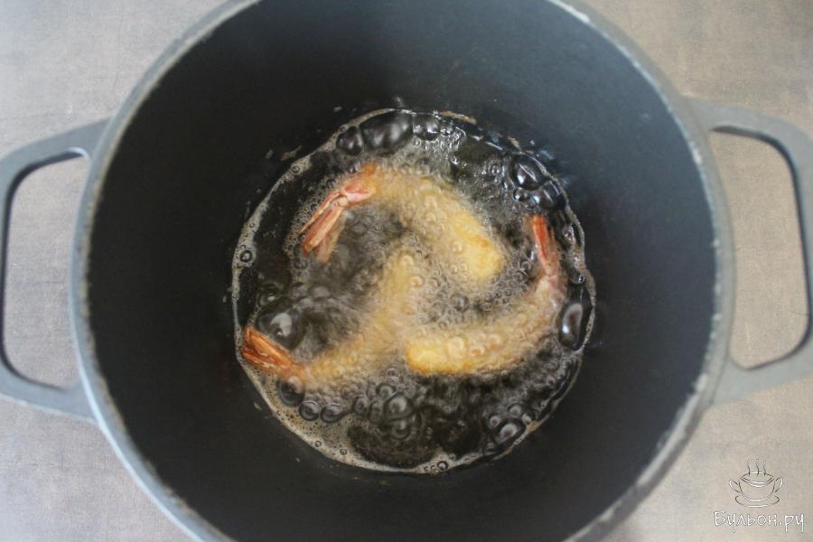 7. Обжариваем лангустины в панировке в кипящем растительном масле. Чтобы удалить растительное масло, обжаренные лангустины на некоторое время размещаем на плотных салфетках. Салфетки возьмут на себя излишки масла.