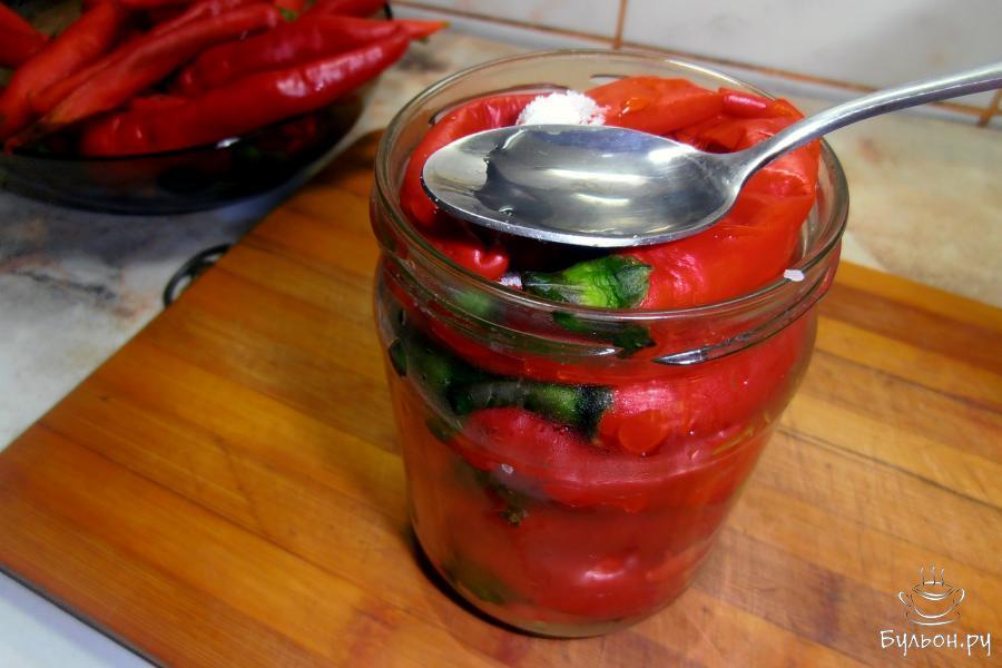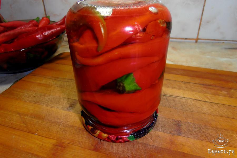 Этот вариант заготовки горького стручкового перца подойдет тем, кто очень сильно любит острый перец. По этому рецепту горький стручковый перец получается слегка маринованный и при добавлении в блюда он ведет себя, как свежий: такой же горький и острый, со своим ароматом и вкусом. Его можно не только класть при приготовлении в любое блюдо, но и подавать, как закуску к основному блюду или на праздничный стол к беленькой.