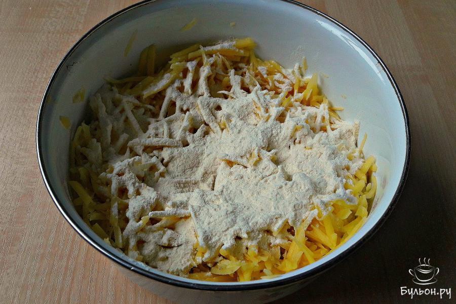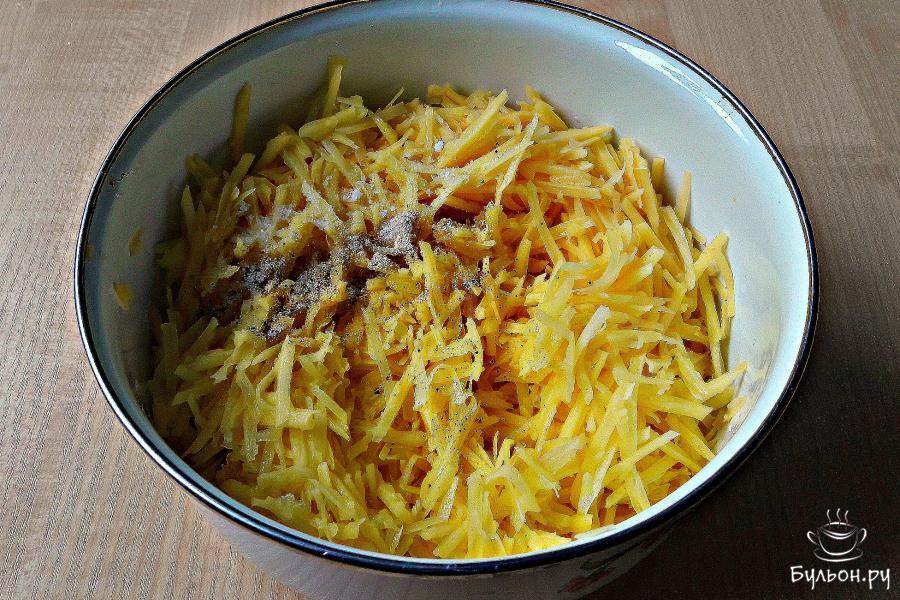 2. Трем картофель на терке. Обратите внимание, что внешний вид готового блюда напрямую зависит от вашего выбора. Мне, например, больше всего нравится тереть картофель на терке для корейской моркови, при таком способе драники получаются лохматыми на вид и хрустящими на зуб.