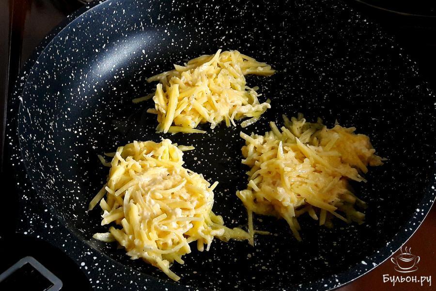 5. Наливаем в сковородку небольшое количество оливкового масла. Разогреваем, жарим драники на сильном огне в течение 3-5 минут до золотистой корочки.
