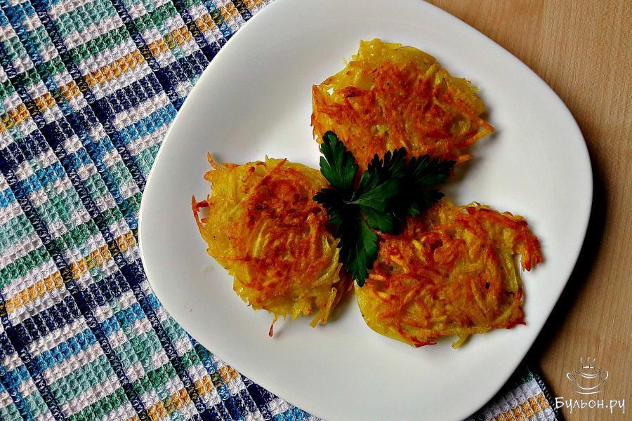 6. Из указанного количества продуктов получается 9 драников - по 3 штуки на порцию. Хрустящие драники готовы, приятного аппетита!