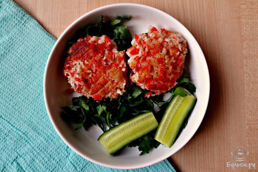 Крабовое мясо - это не только вкусный ингредиент для салатов и бутербродов. Из него можно приготовить горячие, сочные и при этом хрустящие котлетки с совершенно неповторимым вкусом! Крабовые котлетки прекрасно сочетаются со свежими овощами и зеленью, их можно гарнировать любыми крупами или, например, положить на булку, создав собственную вариацию рыбного бургера. Вы можете адаптировать рецепт под себя: нарезка и наполнение вполне вариативны, стоит лишь включить фантазию!