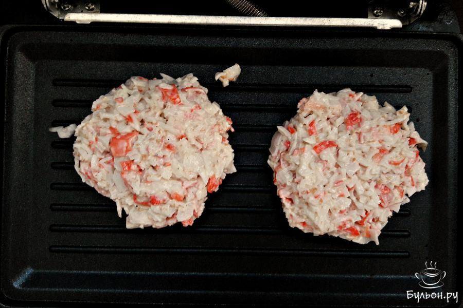6. Формируем котлетки и жарим на электрогриле в течение 5-7 минут. Если вы используете сковороду, готовьте котлетки на средне-сильном огне в течение 5-7 минут с каждой стороны.