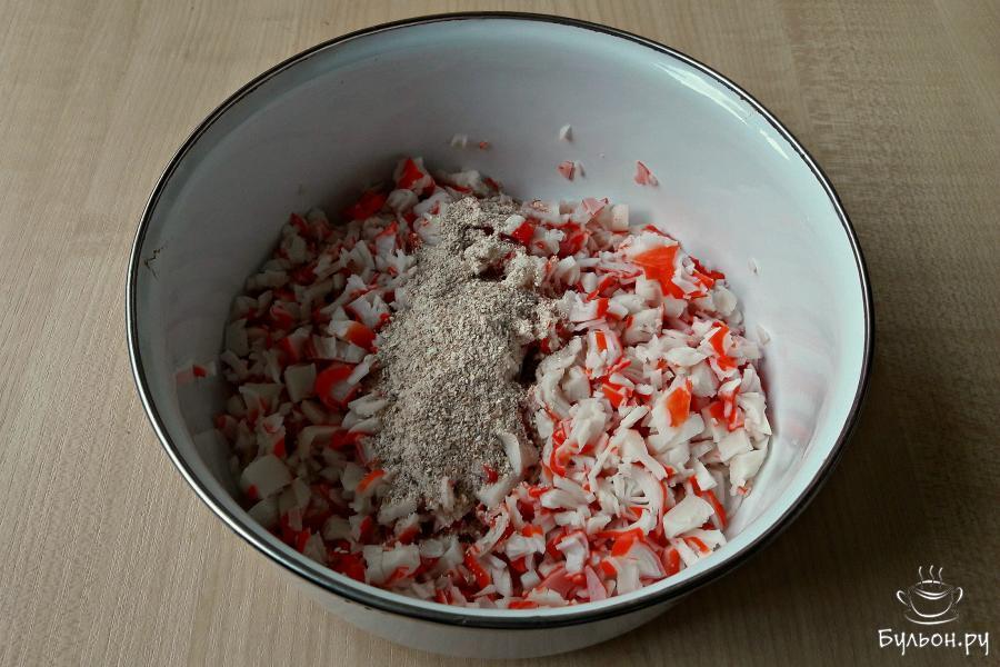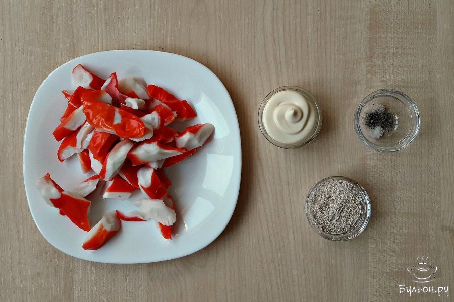 1. Для приготовления крабовых котлет без яиц нам потребуется: крабовое мясо, майонез, сухари панировочные, соль и черный молотый перец.