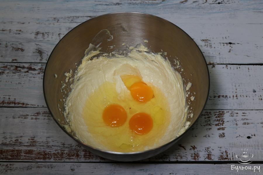 4. Молоко вольем в сотейник и слегка его подогреем, чтобы оно стало чуть теплым, примерно 35-40 градусов. Если есть специальный термометр, то лучше воспользоваться им. Нагретое молоко понемногу вливаем в глубокую емкость к остальным ингредиентам, не прекращая вбивать их.