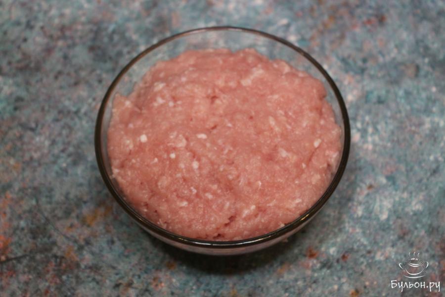 6. Начинки для чебуреков. Первая - мясная. Мясо и лук режем на куски, пропускаем их через мясорубку. К измельченному фаршу добавляем соль, перец и немного воды. Все перемешиваем. Мясная начинка готова.